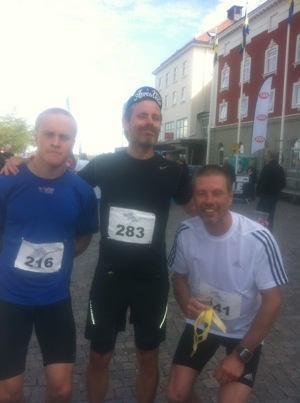 Löpningen: Jag och Robban ut samtidigt. Hade en het kamp och samsades att dra. Riktigt imponerad av Robban då han har några fler kg (i muskler) att dra på än mig. Men på sista kilometern fick jag en liten lucka och slog honom med 7 sekunder. Brorsan som fick slita ont på cykeln kom i mål några minuter efter. Jag kom in som 11:e man. Jag hade bästa löptid i motionsklassen. Men det viktigaste var att jag vann den inbördes kampen mellan oss tre:-)