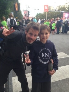Vi började med att kolla på min gudson Victor som sprang lilla Midnattsloppet. Han brås på sin far Esa och sprang fort som bara den. Kul att kolla på alla knattar som far iväg:-)