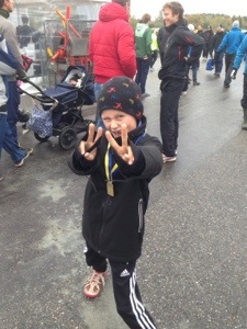 Fanny och Viggo sprang först Kalvruset 3 km. För Fanny gick det bra. Viggo ramlade och råkade slå huvudet i en stock. Så han var inte helt nöjd med loppet. Men det gick över snabbt.