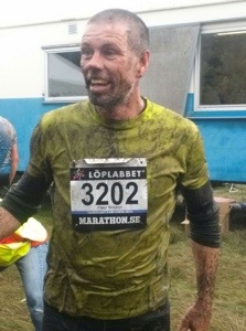 Sista biten var kul. Ett 70 m långt träsk som vi skulle forcera. Mycket publik och skratt bjöds det på här. Kom upp och såg att min nummerlapp flög iväg. Tänkte först skippa den men kom på att tidtagningschipet sitter ju i nummerlappen. Bara att springa tillbaka och plocka upp den. Tappade nog inte mer än 10 sekunder på detta. Kom i mål som 4:a. Supernöjd på tiden 43.20.
