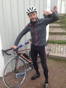 I måndags passade jag på att ta ett cykelpass med brorsan. Han har just nu hälsporre och kan inte springa. Därför har han allt fokus på Vätternrundan och har cyklat rätt mycket på sistone. Det har inte jag!!! Min snälle kompis Markus har erbjudit sig att låna ut sin racer till mig under Vätternrundan. Ett ypperligt tillfälle att testa den en gång innan loppet då. Och det visar sig att det är en av Crescents värstingcyklar! En karboncykel värd 50000 spänn!!! Helt sjukt att jag ska lalla runt Vättern på en sådan. Den kändes skön. Alltså…. Har ju inte något att jämföra med. Men den kändes bra. Då vi drog ut började det ösregna. Och gjorde så första timmen. Frågade brorsan var man växlade någonstans. Han visade mig att dagens växlar sitter på samma handtag där man bromsar…) Måste erkänna att jag var inte mer än säker i början. Med ny dyr cykel, regn på glasögonen och lite större väg med massa bilar på det, tog jag det rätt lugnt i början. Efter en halvtimma kom det en brantare nedförsbacke. Då sa bror att ”ligg tätt inpå mitt bakhjul, så får du se hur mycket man tjänar på att ligga precis efter”. Skojar du? Jag har liksom fullt sjå att inte få panik på platten med bilar och regn och cykel för 50000! Nä bror kom nedför backen ca 100 meter före mig. Men efter någon timma blev vädret bättre. Solen tittade fram någon gång och bilarna blev färre på dom mindre roligare vägarna. Till slut kändes det helt ok. Och värken i häcken blev inte så brutal som jag hade befarat. Däremot var jag de sista milen riktigt öm i ena axeln och ländryggen. Det blev i alla fall 8,5 mil till slut. Vätternrundan är 30… Men jag gissar att jag, Erik och Niclas (som jag kommer att cykla med) tar lite stetchingpauser under resans gång. Tack bror för en fin cykellektion! Och tack Markus för att du lånar ut din fina cykel till en nybörjare! Och du, jag ramlade inte en enda gång:-)