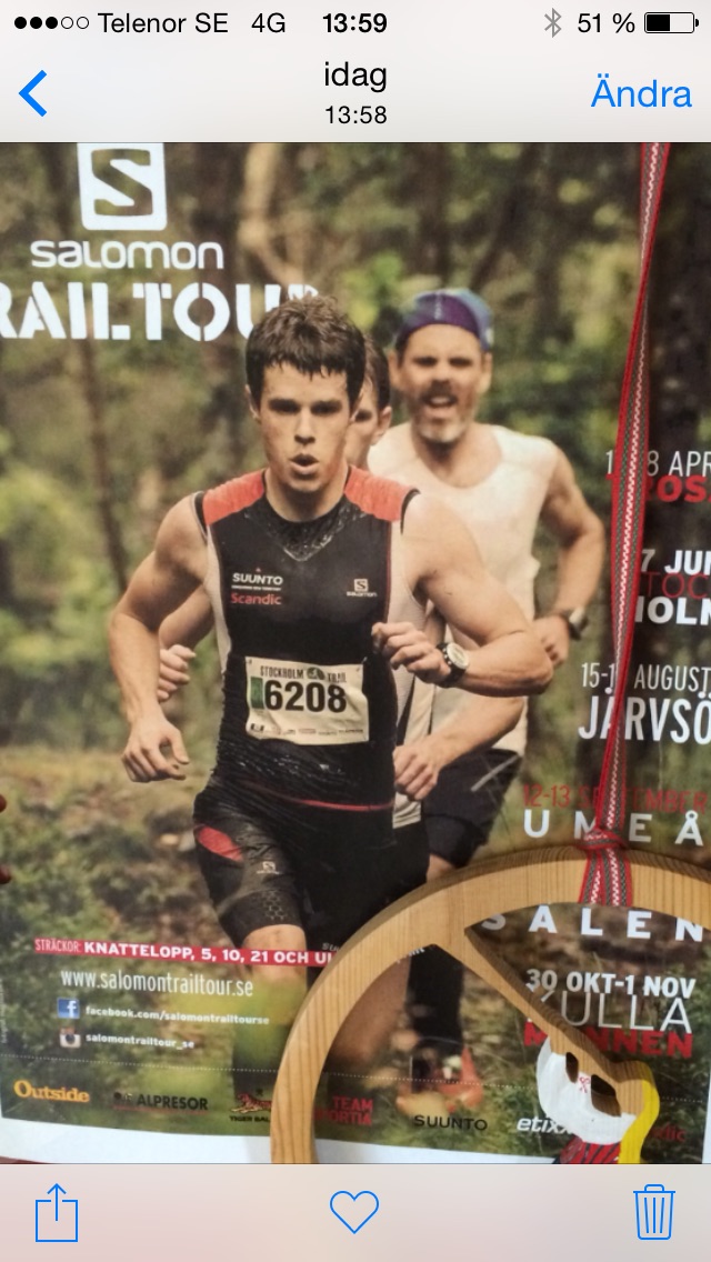 Verkat fastna på en reklamkampanj för Salomon Trailtour. Min polare och kollega Peter var uppe på Lill-Babs cafe i Järvsö och fick syn på den här affischen.