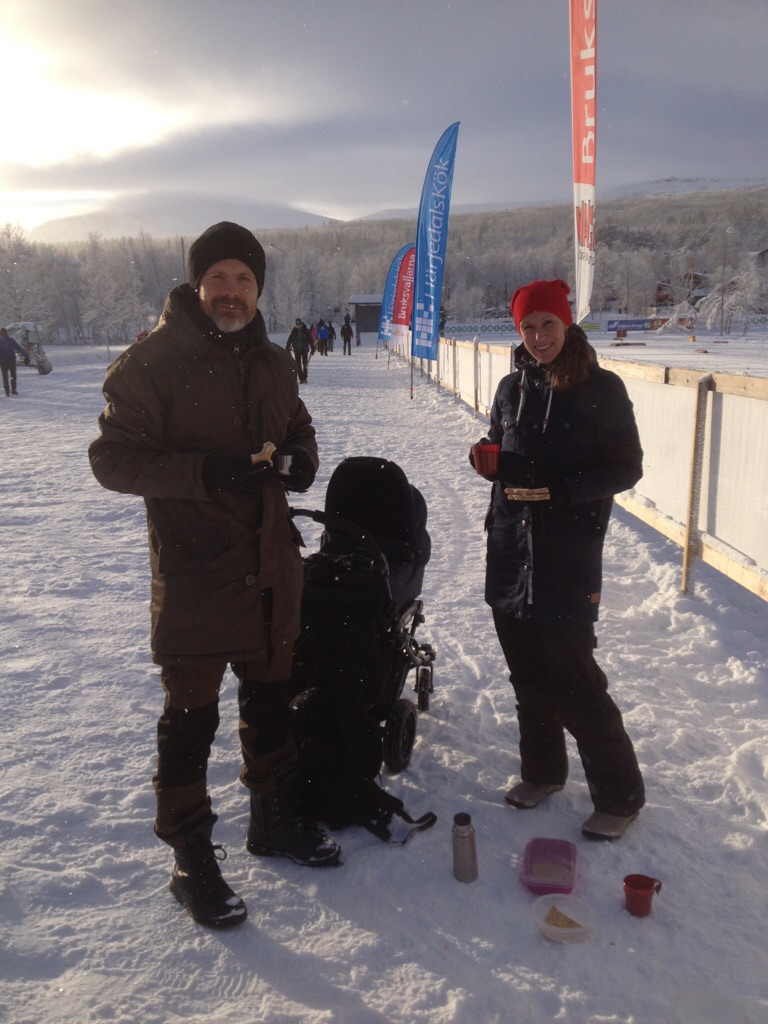 Sista kilometern gick ganska lugnt då vi bestämt oss för att hålla ihop. Vi tappade tiotalet placeringar på detta men det var det värt:) Jag drog tydligen längsta strået (vissa ”påstår” att jag sköt fram foten just vid målgång) och kom in på 447:e plats och bror på 448:e. Vi fick samma tid. 4.44. Robban (tid 5.08 och placering 1088) och Sofia (tid 6.45 och placering 193 i damklassen) gjorde grymma lopp. Med den progressionen som dom har, får man verkligen börja snegla sig om över axeln. Visst jag har haft bättre placeringar förr. Men då har jag ofta stått i första ledet och haft bättre förutsättningar från början. Får ju tänka på att jag och bror faktiskt tog oss förbi ca 450 åkare med tanke på startpositionen. Och som småbarnsfar och mindre träning än förr är jag jättenöjd:) Vi var alla nöjda med både kropp och skidor. Så hemfärden till Dala-Järna kändes skön och förväntansfull. Årets bästa pizza var ju på G.