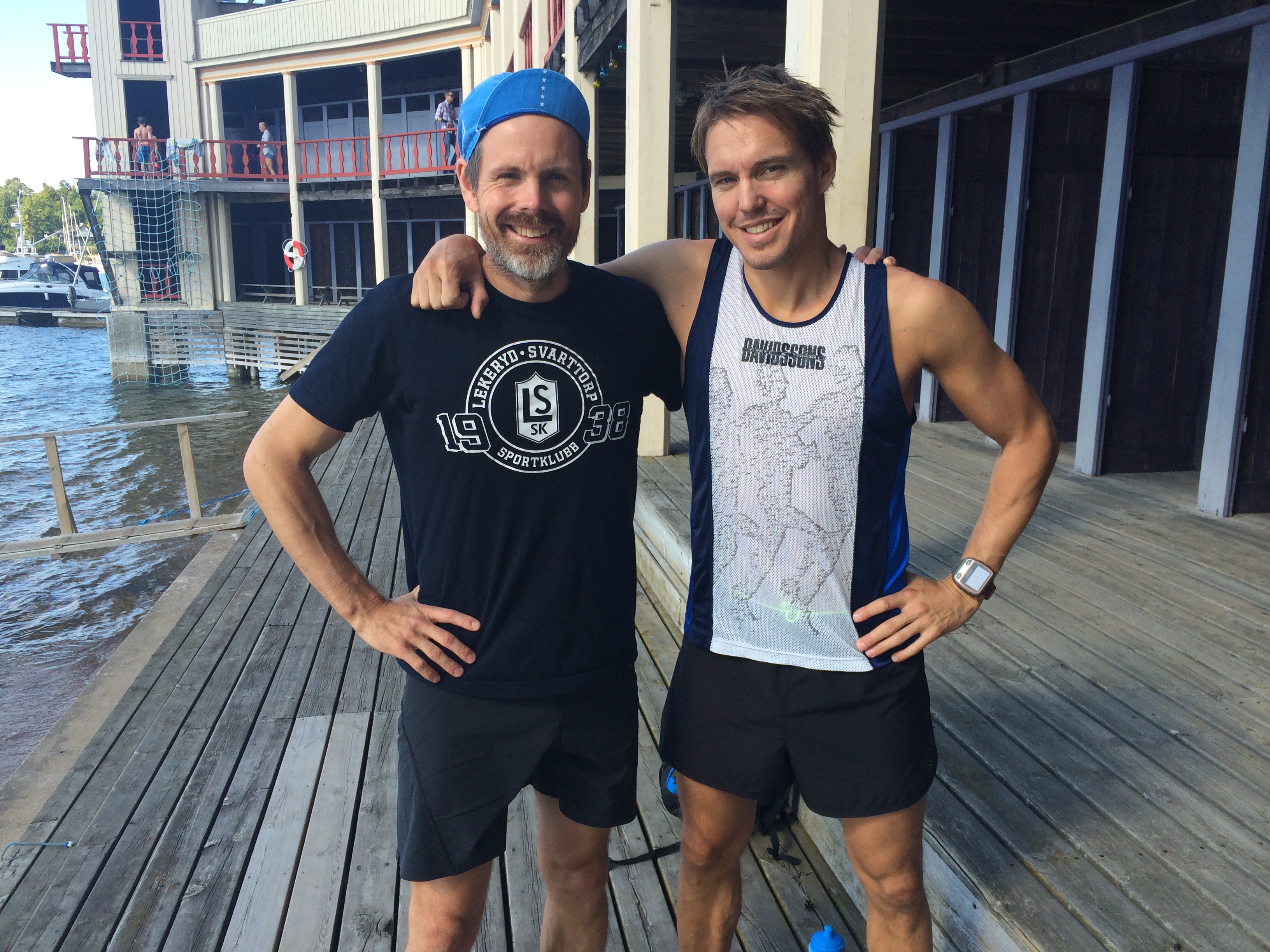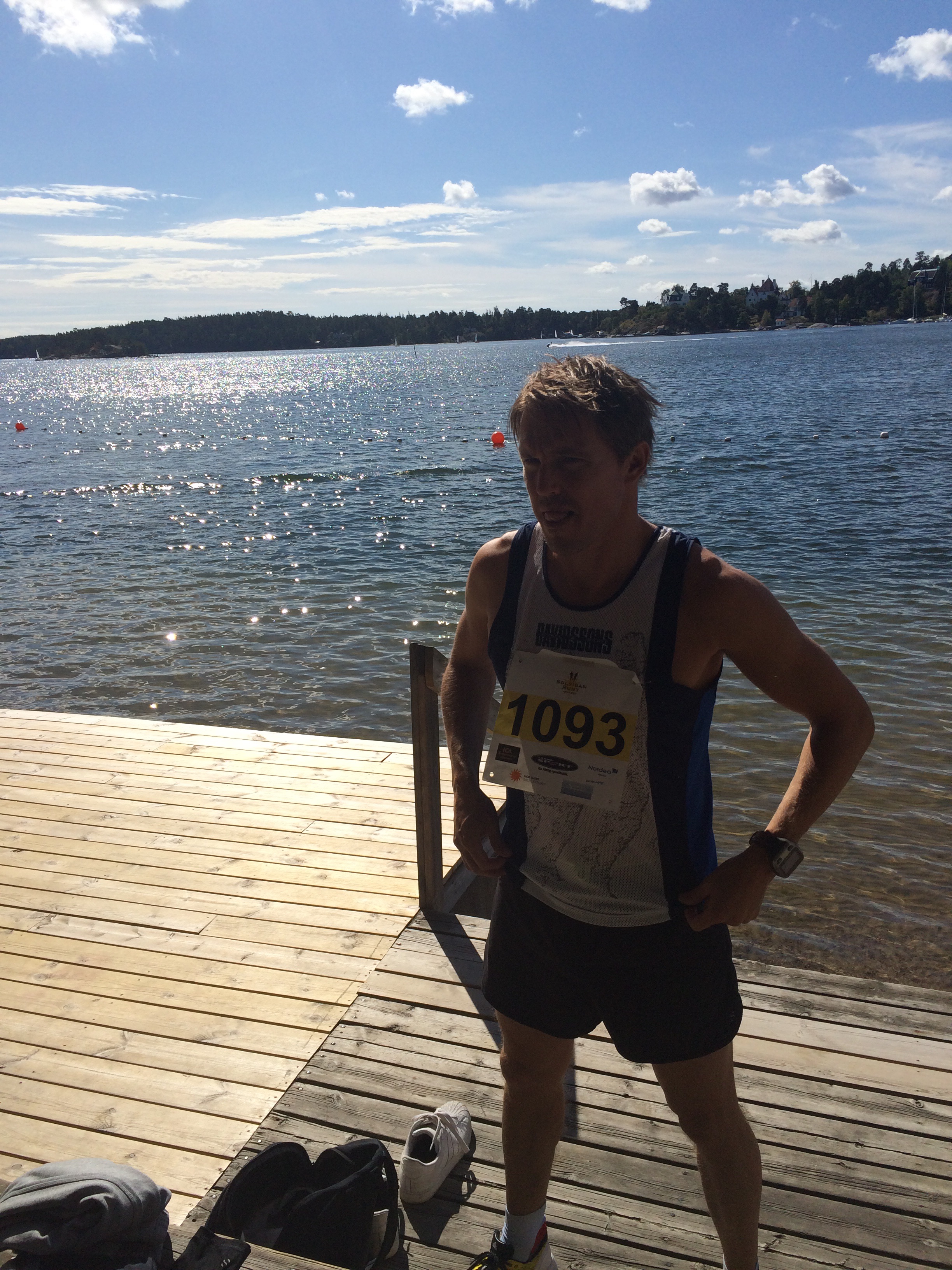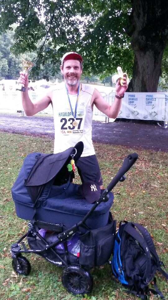 Efter Berg då Oscar tagit bergspriset vilade han upp sig några sekunder tills jag kom ikapp. Sedan sprang vi tillsammans… eller tja… han lekte med mig i den typ 2 km långa nedförsbacken som avslutar detta lopp. Han sprang ifrån och jag kom ikapp osv. ett antal gånger innan han tackade för sig och kom i mål 13 sekunder före mig. Hans lilla stopp kanske inte tog jättemånga sekunder. Kanske 30-60. Men man kan ju anta att hans mage stoppade honom mer tid än så denna dag. Jag är väldigt nöjd ändå att inte vara längre efter en så duktig kille. Skiljer ju drygt 20 år emellan oss och han är en erkänd elitidrottare i både löpning och längdskidåkning. Jag hade 3.41 min/km i snitt på denna kuperade terrängtävling. Så nog är jag nöjd och glad med det. Roligaste och bästa loppet för i år för min del. Vill ju gärna springa bra här. Annars får man åka tillbaka till Sthlm och skämmas:) Tack bror, Stefan och alla andra från Öis för en grym dag!