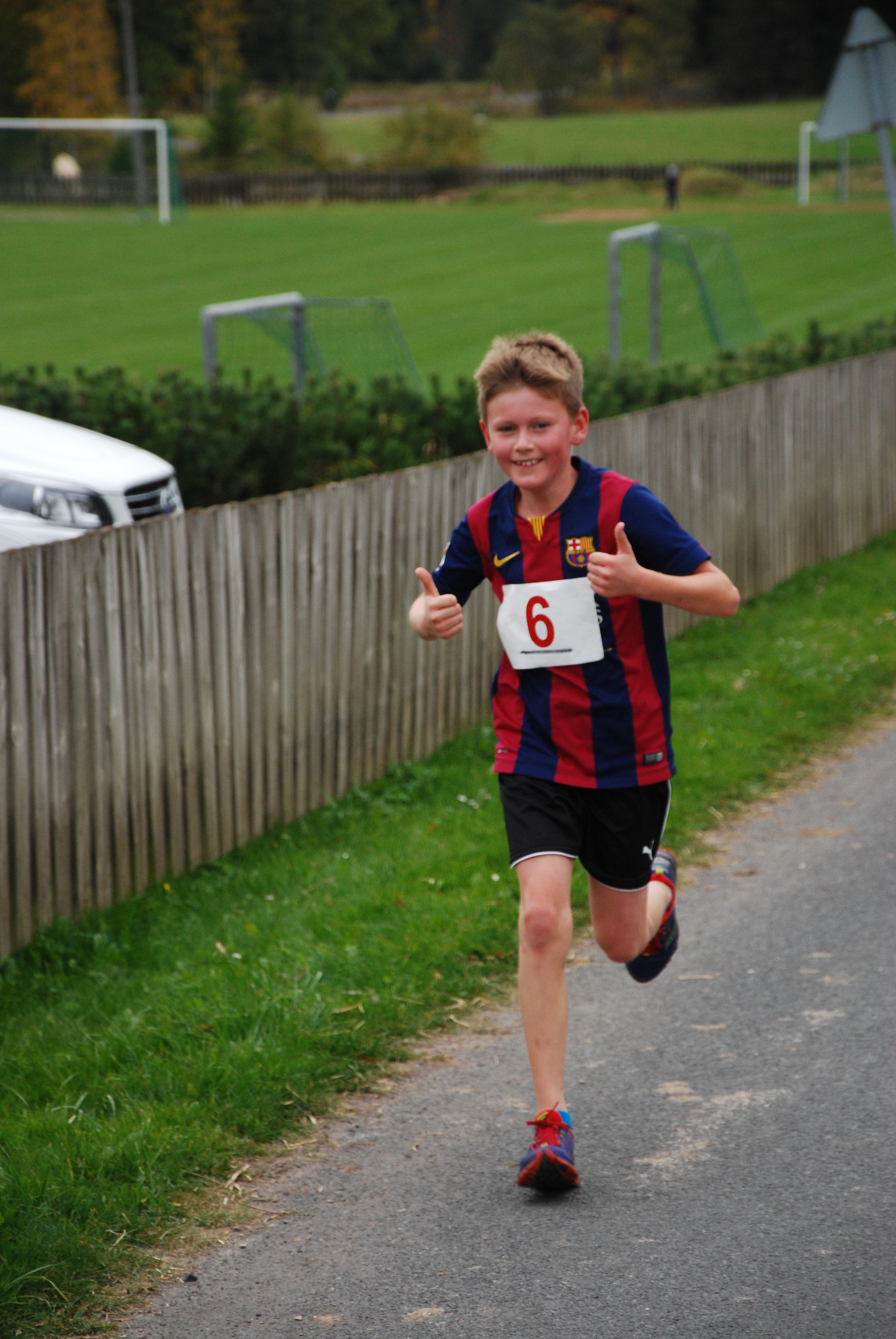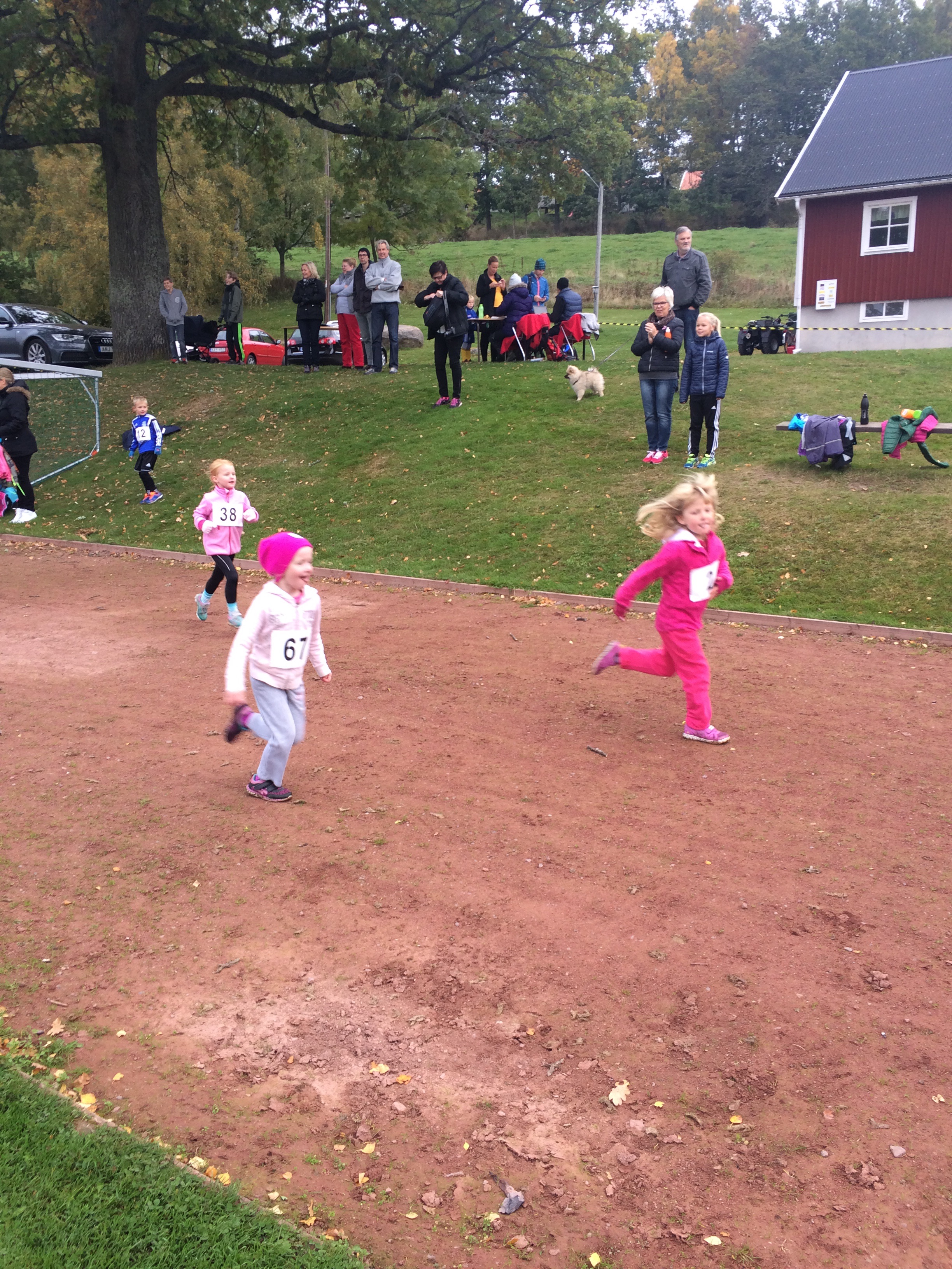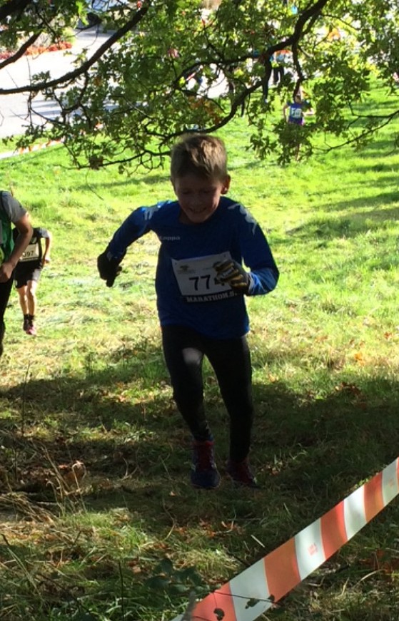 Först ut är det de lite mindre barnen som springer runt löparbanan. Sedan kör de lite äldre 1,5 km innan det är dags för 13 km och sedan 5km som brorson Viggo sprang in på en fin 5.e plats.